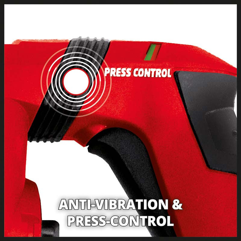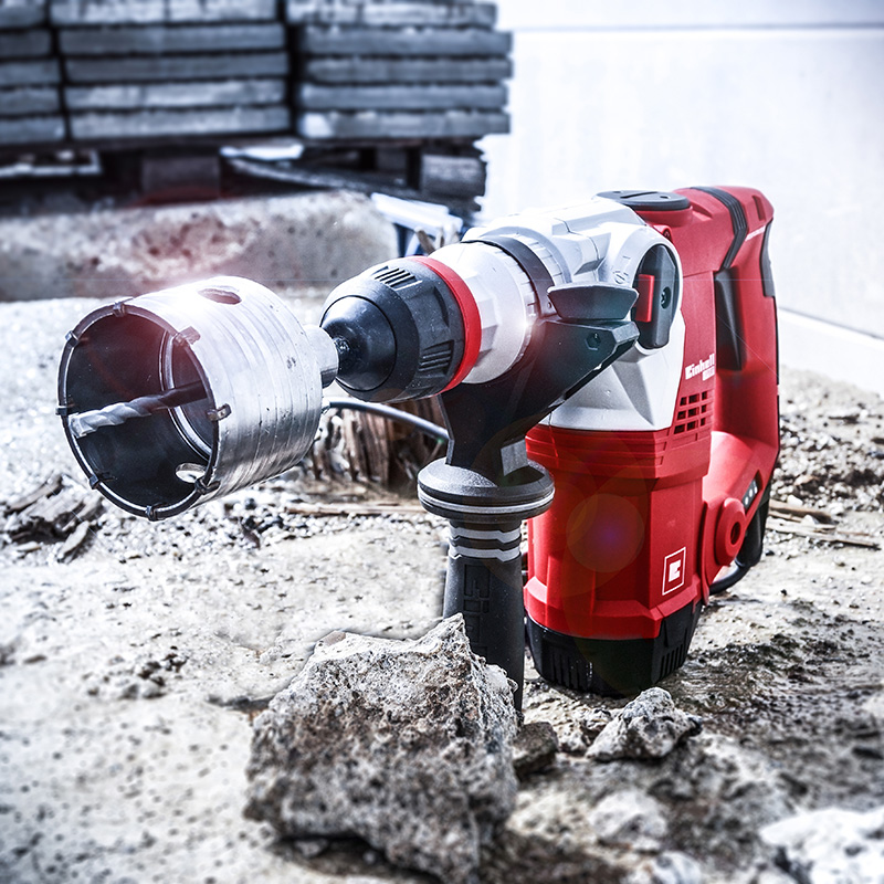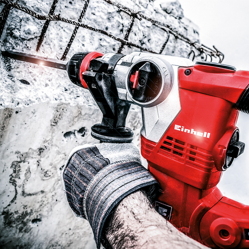 TE-RH 32 E sa SDS plus prihvatom je visokokvalitetna čekić bušilica s pneumatskim mehanizmom namijenjena za zahtjevne izgradnje, renoviranje i poslove klesanja. Opremljena je sa sve 4 funkcije koje su potrebne za univerzalnu primjenu: čekić bušenje, bušenje, klesanje sa i bez fiksacije dlijeta. Glavni prihvat ima Antivibracijsku funkciju i signalizira optimalni pritisak pomoću „Press Control“ funkcije koja je važna potpora kod niskog trenja i brzih zahvata. TE-RH 32 E opremljena je elektroničkom kontrolom brzine za ugodnije i lakše bušenje. Aluminijsko kućište je robusno, a 2 LED indikatora pokazuju status i informiraju o preostalim performansama i potrebi za servisiranjem (potrošenost četkica). Visoka sigurnost tijekom rada osigurana je zahvaljujući zaštiti od preopterećenja, spojka reagira odmah ukoliko dođe do neočekivanih prepreka. Mnogostruko podesivi graničnik dubine bušenja, omogućuje omogućuje točne rezultate bušenja te pomaže u ponavljanju izrade rupa istih dubina. Isporuka artikla je u praktičnom plastičnom koferu.