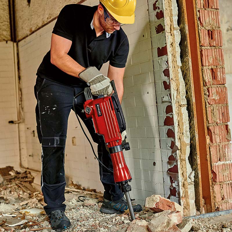 S Einhell čekićem za razbijanje TC-DH 43, ambiciozni uradi sam majstori mogu odraditi čak i najzahtjevnije poslove rušenja. Izvrsne performanse za radove rušenja u kući i vrtu zagarantirane su zahvaljujući jedinstvenoj snazi udara od 43 J. SDS-šesterokutni prihvat alata osigurava brze i jednostavne izmjene alata. Dodatna ručka TC-DH 43 dizajnirana je na način da se može podesiti kroz 180 stupnjeva, što omogućava da se čekić za razbijanje fleksibilno prilagodi bilo kojem radnom položaju. U tom procesu gumeni kabel dug 3 m nudi maksimalnu mobilnost. Čekić za razbijanje nudi robustan i izdržljiv dizajn i konstrukciju, pa je također prikladan za zahtjevne kontinuirane operacije. Čekić za razbijanje spreman je za upotrebu odmah s isporučenim ravnim i šiljastim dlijetom. Uređaj se isporučuje u praktičnom kovčegu za transport i skladištenje.