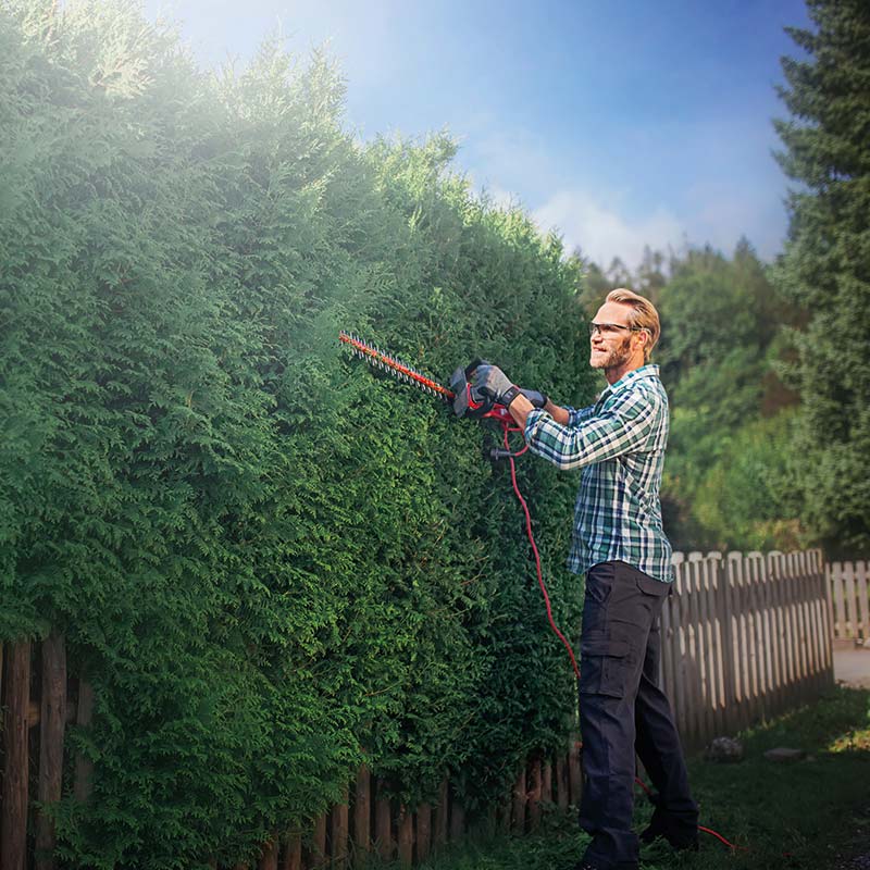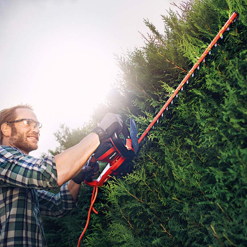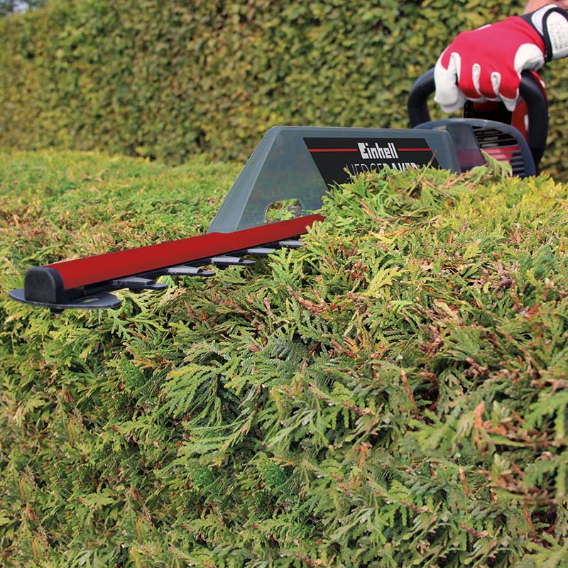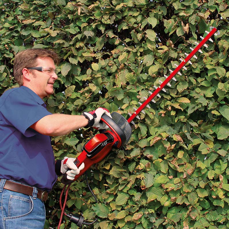 Električne makaze / škare za živicu Einhell GC-EH 6055/1 čine obrezivanja živice, žbunja i grmlja lakim. S duljinom reza od 61 centimetara i duljinom reza od 550 milimetara, to je visokokvalitetni, snažni pomagač za pouzdano postizanje željenog oblika svaki put zahvaljujući snažnom motoru od 600 W. Električni trimer za živicu Einhell GC-EH 6055/1 ima brzinu praznog hoda od 1.700 / minuti s razmakom zubaca od 26 milimetara. Rezači izrađeni od laserskog i dijamantnog brušenog čelika dizajnirani su za preciznost i dugotrajnost. Dugi vijek rada škara omogućuje metalni zupčanik. Dodatna ručka pruža optimalnu ergonomiju i sigurno i čvrsto držanje bez obzira na kut rezanja. Trimer za živicu opremljen je dvostrukim sigurnosnim prekidačem za uključivanje / isključivanje i mekanim držačem, a također je ugodan za rukovanje zahvaljujući maloj težini. Električni trimer Einhell GC-EH 6055/1 također je opremljen velikim štitnikom za ruke i aluminijskim poklopcem preko oštrice. Obujmica za odvajanje kabela također pruža dodatnu sigurnost tijekom uporabe. Prikladno uklanjanje reznica s vrha živice kod obrezivanja grmlja osigurano je zahvaljujući praktičnom sakupljaču rezača.