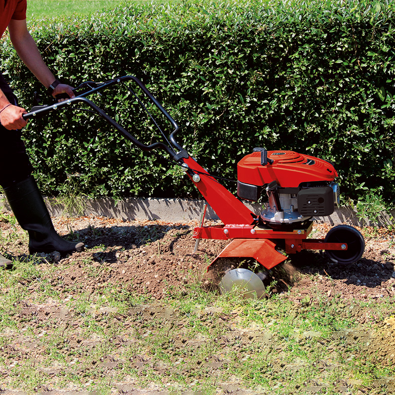 GC-MT 2560 LD motorna kopačica pruža ambicioznim uradi-sam majstorima praktičan i moćan baštenski alat za visoko efikasnu obradu tla. Jednocilindrični četvorotaktni motor sa radilicom sa dvostranim ležajevima osigurava visoke performanse i nesmetan rad. Snažne lopatice kultivatora obezbeđuju brzo kretanje čak i kroz čvrsto tlo. Papučica kočnice podesiva po visini olakšava podešavanje radne dubine. Za siguran rad GC-MT 2560 LD je opremljen funkcijom za zaustavljanje lopatice kopačice – čim otpustite prekidač, sigurnosni mehanizam će isključiti lopatice. Bočni granični diskovi obezbeđuju precizno vođenje. Za jednostavnu promenu lokacije bez napora, kopačica je opremljena okretnim točkom. Omogućeno je optimalno prilagođavanje kopačice korisnicima svih visina zahvaljujući ergonomskim, stabilnim ručkama podesivim po visini.