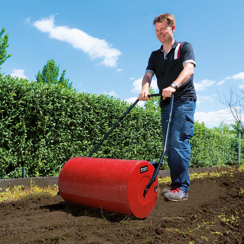 Valjak za travu Einhell GC-GR 57 od plastificiranog čelika, robusne izrade koristan je alat na travnjaku. Dizajniran je za valjanje svježe posijanog sjemene osiguravajući tako prekrivanje sjemena zemljom odnosno kasniji što veći postotak klijavosti. Valjak se također može koristiti nakon košnje ili gnojenja. Tijelo valjka možete puniti vodom ili pijeskom kroz otvor s bočne strane. Valjak je opremljen prečkom za čišćenje tijela valjka od blata.